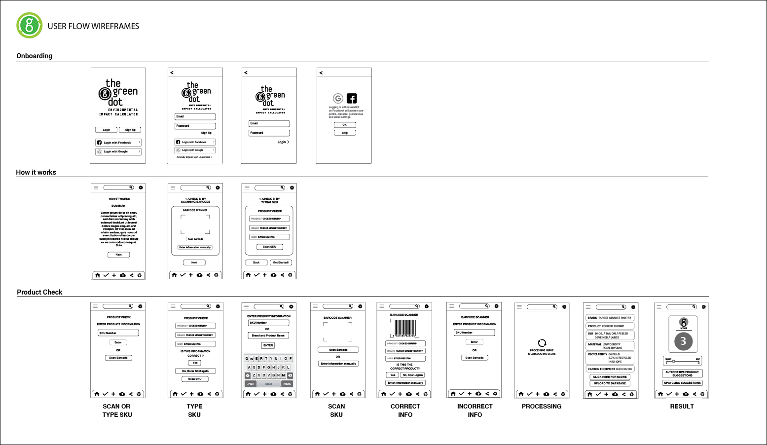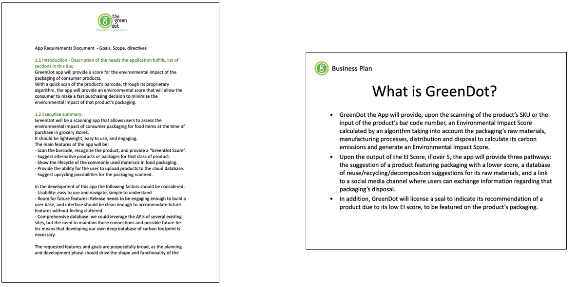Intended to inform consumers to make better, lower carbon-footprint shopping choices, GreenDot instantly informs the user of a product packaging's environmental score through the scanning of its barcode. Rating on a scale of 10, when a product's packaging rates above a 5– indicating a high carbon footprint–